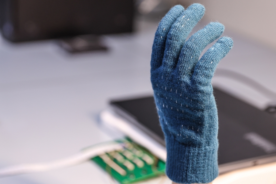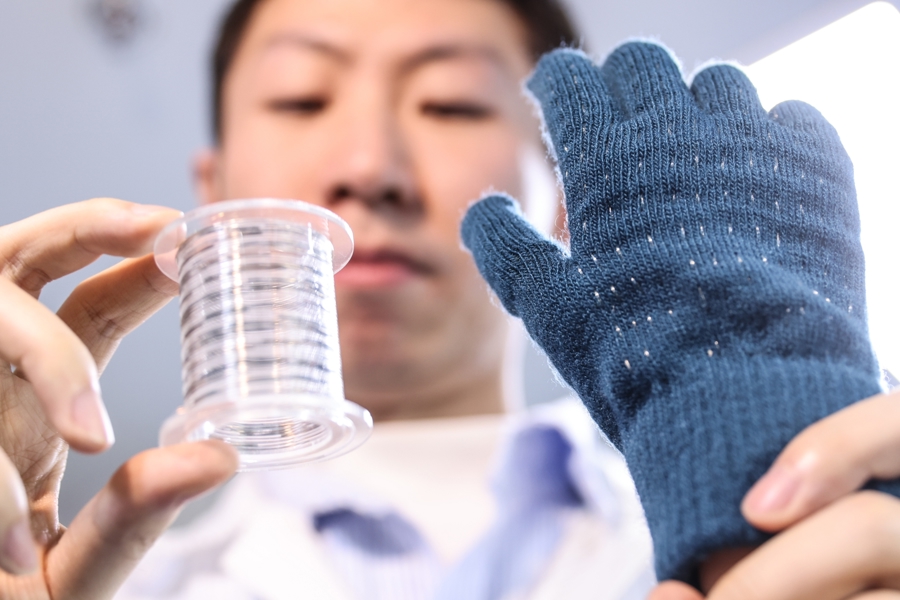 基于“纤维芯片”,无需外接处理器,可直接编织构建柔软、透气的全柔性电子织物系统。