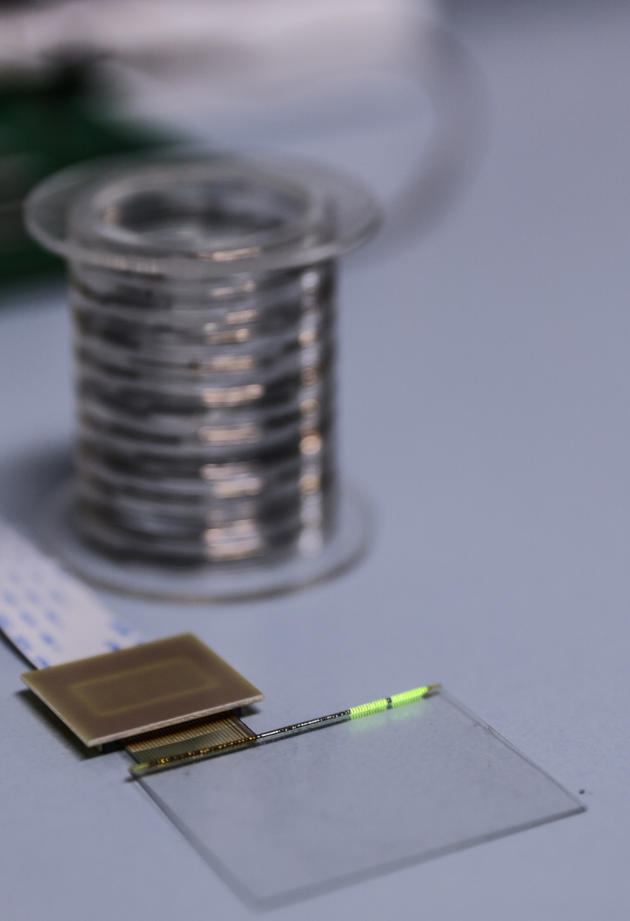 “纤维芯片”信息处理能力与典型商业芯片相当,且具有高度柔软、适应拉伸扭曲等复杂形变、可编织等独特优势,有望为脑机接口、电子织物、虚拟现实等新兴产业变革发展提供关键支撑。团队通过5年攻关,启盈优配探索出系统解决方案,发展出可在弹性高分子上直接进行光刻高密度集成电路的制备路线。