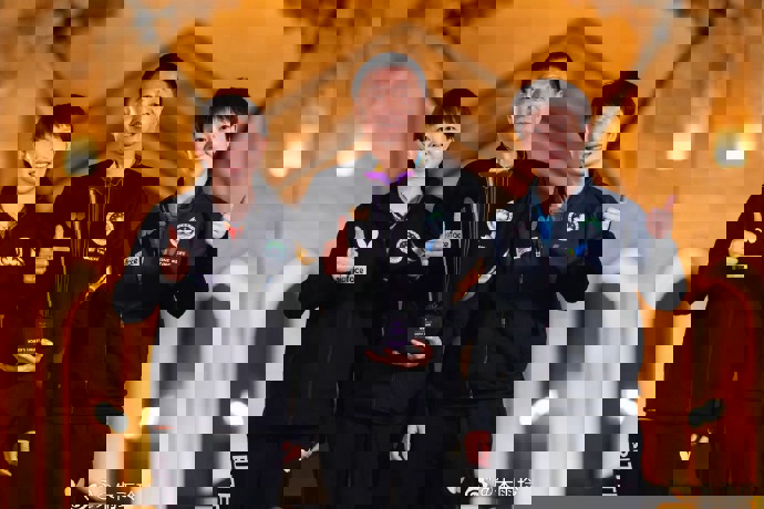 新年连夺两冠后,朱雨玲晒出与教练陈振江、陪练金惠美的合影(朱雨玲微博)
